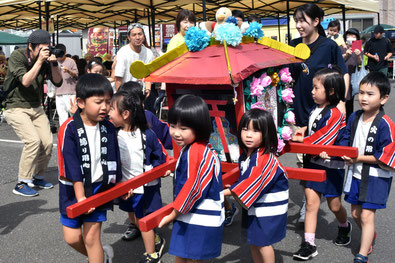 大崎市田尻の国指定重要文化財「木造千手観音坐像」にあやかった市民参加型イベント「千手観音まつり」が9月21日、千手観音の観覧室がある市田尻総合支所の敷地内で開かれた。ステージ発表や出店、千手観音にちなんだクイズラリーなどが行われ、家族連れら約2000人でにぎわった。木造千手観音坐像は小松寺(田尻小松)の本尊として伝来。小松寺は明治初期に廃寺となったものの、地域住民が守り伝えてきた。2017年に国重要文化財に指定された。地域では千手観音を地域活性化にも活用しており、マスコットキャラクター「小松のせんじゅさん」を制作したり、菓子店が千手観音にちなんだ菓子を開発したりしている。まつりもその一環で、4回目。