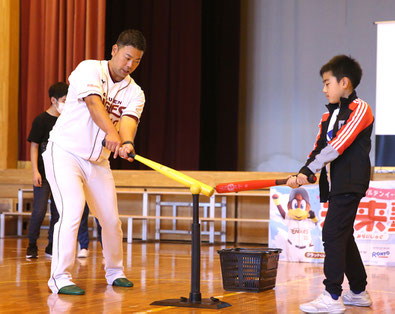 元プロ野球選手らが、夢を持って努力することの大切さを説く「楽天イーグルス未来塾」が9月25日、美里町北浦小(佐藤浩人校長、児童数95人)であった。元楽天イーグルス投手で、現在は楽天イーグルスアカデミーコーチを務める寺岡寛治さん(32)が自らの野球人生に触れ、挫折しても挑戦を続けることの尊さを訴えた。