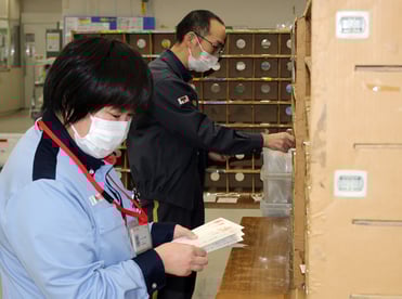 年の瀬を迎え、大崎市の古川郵便局は年賀状の仕分け作業に追われている。同局によると、今週から年賀状の投函が急増。年内最後の日曜日となった24日に作成した人が多かったためとみられ、官公庁などが仕事納めとなった28日以降、さらに増えているという。局員は約1時間ごとに年賀状専用ポストの中身を回収。新仙台郵便局で機械区分するため、年賀状の向きをそろえたり、普通のはがきが紛れ込んでいないか確かめたりしている。新仙台郵便局から届けられた年賀状のうち、文字のかすれやシールによるデコレーションなどが原因で機械区分できなかったものは、手作業で仕分け。誤配、遅配を防ぐため昨年から機械を通したものも人の手で再確認することにしており、多くの局員が作業に当たっている。