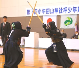 小中学生剣士が腕前を競う「小牛田山神社杯少年剣道大会」が18日、美里町トレーニングセンターで開かれ、選手たちが団体戦で日頃の練習成果を発揮した。同町は旧小牛田町時代から「剣道のまち」として知られ、町内の小牛田農林高は全国屈指の強豪として高校剣道界に名をはせる。大会は町や町体育協会、遠田商工会などでつくる実行委員会が主催、大崎タイムスなど後援。16回目の今回は4年ぶりの開催となり、県北の47チーム(小学校23、中学男子13、同女子11)合わせて約250人が出場した。選手たちは、小中学生男女別3種目で3~6ブロック別の予選リーグを戦い、1位通過または2位までに入ったチームが決勝トーナメントに進出。相手との間合いをはかりながら好機をつかむと一気に間合いを詰め、面や胴を決めていた。