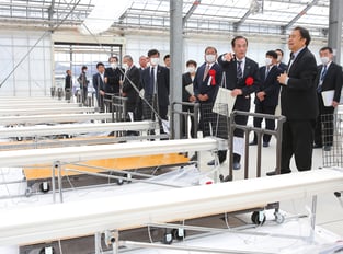 美里町のトマト生産「デ・リーフデ美里」が同町練牛に建設を進めていた栽培プラントがこのほど完成し、稼働を始めた。生産面積は県内最大級で、年間約700トンの大玉トマトの出荷を目指す。竣工式と安全祈願祭が3日に現地で行われ、5月大型連休明けの初出荷に向けて関係者が無事故を願った。トマトの需要拡大を受け、石巻市のトマト・パプリカ生産「デ・リーフデ」グループが、市内2カ所に続く第3の生産拠点を模索。2021年に生産をやめた美里町のバラ生産会社の屋根型鉄骨ハウス(1999年建築)を買収し、デ・リーフデ美里を設立した。トマト栽培への特化を目指し、昨年8月から約3億9000万円かけプラントを改修した。作業用レールや自動スプレーカーのほか、生育環境を一定に保つ複合環境制御機器を導入。室温や水分、肥料の濃度を自動制御し、生育度合の均一化と省力化を図るという。栽培面積は2万808平方メートルで、最大5万2000本の生産目標を掲げる。従業員は31人で、うち9割ほどを町内から雇用した。