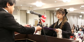 宮城誠真短大(山口義康学長)の第36回卒業式・学位記授与式が9日、大崎市古川のグランド平成で開かれ、それぞれ保育の現場などへ巣立っていった。同短大は保育者養成を目的とした単科短大。卒業生は県内外で幼稚園教諭、保育士などとして活躍している。卒業式では、山口学長が一人一人に卒業証書・学位記を授与し、「学業のほか学生消防団やボランティアなどの活動にも取り組み、他人を思う姿は立派だった。自分のペースで、過去の自分を乗り越え成長してほしい」と式辞を述べた。
