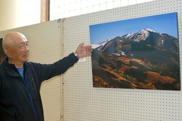 大崎市田尻の山岳写真家、舞嶽公敬さん(73)の作品展が4日から、沼部公民館で開かれている。山形県の月山や福島、山形、新潟3県にまたがる飯豊連峰といった東北の山々を捉えた作品が並び、訪れた人の目を引き付けている。9日まで。舞嶽さんは、東京都内の建設会社に勤める傍ら20代でカメラを始め、40代でプロカメラマンとして独立。25年前に帰郷した。現在も各地の山に登って四季折々の表情を撮り続けており、地元田尻での作品展は2年ぶり2回目。今回は、この10年間撮りためた中から40点を展示。フィルムカメラにこだわって撮影した作品は、眼下に草紅葉が広がる雄大な晩夏の飯豊連峰や、絶えず流れる雲が一瞬途絶えた瞬間を切り取った以東岳(山形)、真っ赤な朝焼けと黒く浮かび上がる稜線、大海のような雲海など。写真制作会社「写真弘社」(東京都)で仕上げた縦60㌢、横75㌢の大型写真が迫力ある姿を伝えている。