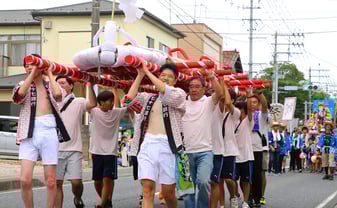 お盆の14日、夏祭りが各地で開かれた。新型コロナウイルスの5類引き下げを受けて手探りでの再開だった昨年と異なり、コロナ禍前のにぎわいが戻った。地元住民のほか、帰省中の人たちが古里の夏を楽しんだ。大崎市鹿島台の「わらじまつり」(実行委員会主催)では、昨年に再開を目指すも台風の影響で見送ったメインイベント「わらじパレード」が5年ぶりに復活。住民ら約600人が大小合わせて15基のわらじみこしを担ぎ、鹿島台小とJR鹿島台駅前交差点間の県道約500メートルを往復した。同市松山の「まつやま夏まつり」(実行委主催)は松山公民館駐車場を中心に開かれた。ちょうちんや紅白幕が彩る山車「松山ばやし」(高さ約3メートル)に児童ら20人余りが乗り込み、笛と太鼓を演奏。涌谷町の江合川河川敷では恒例の花火大会(町など主催)を開催。町出身の声優安野希世乃さんのファン「安野家。」有志約100人が協賛したスターマインなど約2000発が夜空を焦がし、約5000人が酔いしれた。