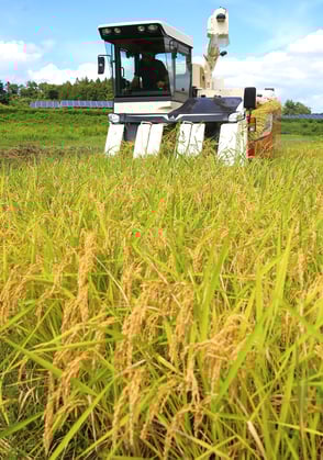 主力品種と比べ2週間ほど早く収穫できるイネの極わせ種「五百川」の稲刈りが20日、大崎市三本木伊賀のほ場であった。古川農協管内ではことし初の収穫で、早ければ来月上旬にも県内外の販売店に流通するという。初収穫を迎えたのは地元生産者、齊藤作郎さん(70)の田約50アール。ことしはひとめぼれやササニシキ、だて正夢など計8種を21ヘクタールで栽培していて、10月半ばにかけて刈り取ることにしている。五百川は5月3日、計1・5ヘクタールに作付けした。高気温に恵まれて生育は平年より早く、猛暑だった昨年並みだった。高温障害が懸念されたが、日夜の気温差が大きく、品質への影響は少ないとみられるという。