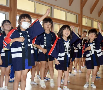 ことし4月に開園した色麻町の幼保連携型認定こども園「わくわくゆめの樹こども園」で6日、幼年消防クラブの結成式が行われ、1期生となる年長児36人が防火を誓った。式では、加美消防署の板垣英明署長が代表園児に任命証を手渡すと、そろいの法被を着た園児たちが「火遊びしません」「マッチやライターを持ちません」などと大きな声で宣誓。この後、大崎広域消防本部が考案した「ぼうさい体操~ぐらぐらステップ~」で防災を学習。同署署員が扮するヒーロー「消防戦隊タスケンジャーZ」、同町のマスコットキャラクター「かっぺい君」「まこちゃん」と一緒に楽しく踊りながら、地震発生時の行動を確認した。