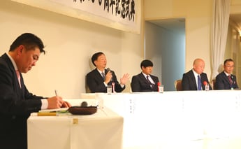 大崎市三本木地域の企業でつくる「三本木企業協議会」は8日、創立50周年記念式典を同市古川のアインパルラ浦島で開いた。出席した関係者約80人が会の歩みを振り返り節目を祝ったほか、パネルディスカッションを通して企業の在り方や地域で果たすべき役割について考えた。同協議会は1974(昭和49)年創立。景況感などについて情報交換を図ったり先進地を視察したりしている。地元公園へのサクラ植樹やベンチ寄贈を通じ地域経済や文化、スポーツの振興、発展にも努めている。パネルディスカッションには、住宅建材等製造大手「YKK AP東北製造所」の元所長で同社取締役CHRO(最高人事責任者)の松谷和男さん、オーダースーツ製造「佐田」宮城工場長の加藤実さん、酒造業「新澤醸造店」社長の新澤巌夫さんら4人が登壇した。パネリストたちは、社長が自ら自社製スーツを着て登山やサーフィン、バンジージャンプといった活動に取り組んだり能登半島地震被災地の酒造りを支援したりといった試みが報道され、結果的に自社のPRにつながっている点を紹介した。