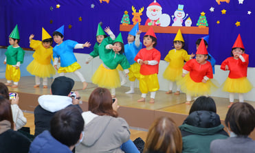 クリスマスシーズンを迎え、大崎地方の幼児教育施設などでもクリスマス会が開かれている。サンタクロースに扮した団体、企業関係者による訪問やプレゼントに子どもたちは大喜び。園児の発表もあり、聖夜に向け雰囲気を盛り上げている。大崎広域ほなみ園(大崎市三本木南谷地)では13日にあり、「古川古城ライオンズクラブ」の山本園子会長ら7人とパチンコホール「ダイナム」(東京都)の大崎地方3支店関係者4人が訪問。菓子の詰め合わせを全園児28人に手渡した。涌谷修紅幼稚舎(涌谷町字追廻町)のクリスマス会は14日に開催。全園児43人が年齢別に遊戯やダンスを披露したほか、サンタクロースから贈り物を受け取った。4~6歳児22人は童謡「にじ」を手話を交え披露し、保護者らの涙を誘った。