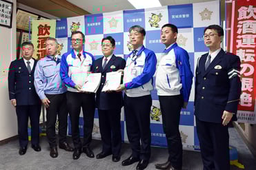 会社ぐるみで飲酒運転の根絶を−。大崎市内に開発、製造拠点を持つアルプスアルパイン(本社・東京都)は25日、関連会社含め従業員約3000人分の署名簿と「根絶宣誓書」を古川署へ提出した。公私で飲酒する機会が増えがちな年末年始の前に、規範意識向上を図る社独自の取り組み。署名には仙台開発センター(大崎市古川中里)1936人、アルプスビジネスクリエーション(同)51人、第2工場(大崎市古川北原)951人が協力。横山進矢開発センター長、橋本哲也工場長らが署を訪ね、高橋誠署長に直接届けた。