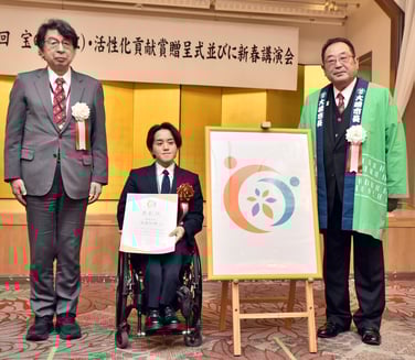 大崎市病院事業が市民病院本院(同市古川穂波)移転10周年にちなみ一般公募したシンボルマークの採用作品が6日、市主催「宝の都(くに)・活性化貢献賞贈呈式」で披露された。職員たちの名札や名刺、ウェブサイトなど事業全般で使う。デザイン事務所を営む海藤航輝さん(33)=仙台市若林区=の最優秀賞受賞作が本採用に。大崎の頭文字「O」をモチーフとし、向き合う二つの弧で「患者と地域」「市民病院」を、葉の意匠で「6医療施設(本院、3分院、診療所、健康管理センター)」を表現。オレンジと緑の色使いはそれぞれ「紅葉と健康」「安心と信頼」の象徴という。