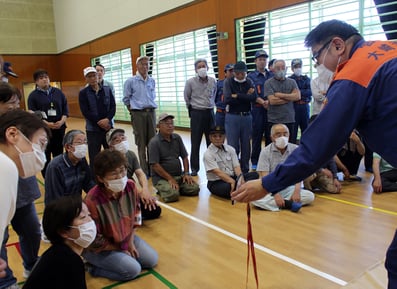 大雨を想定した総合防災訓練が7日、大崎市松山地域であった。避難や応急手当の訓練を行ったほか、スマートフォンを使い災害や事故の状況を映像で119番通報する大崎広域消防本部の新しいシステムについて話を聞き、理解を深めた。松山地域では昨年から、地域を三つに分け3年計画で大雨、水害に対応する訓練を行っている。ことしは長尾地区と金谷地区が対象で、総勢約130人が参加した。訓練は、大雨で市が特別警戒本部を設置し全域に警戒レベル4「避難指示」を発令した、という想定で実施。松山総合支所は現地特別警戒本部を置き情報収集などに当たり、自主防災組織は住民に避難を促すなどした。映像通報システムは、大崎広域消防本部が5月に運用を開始。同本部通信司令センターから応急手当の方法を現場に伝えることもでき、訓練では志田分署の消防職員がスマートフォンでセンターとつなぎ、動画で心肺蘇生法の手順を指導する様子を紹介した。