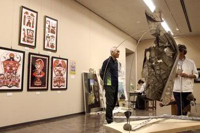 第8回ジバート展(運営委員会主催)が、大崎市民ギャラリー・緒絶の館で開かれている。大崎市を中心とした県内ゆかりの作家25人が絵画や写真、彫刻、陶芸などを展示しており、訪れた人たちは個性が感じられる作品をじっくりと鑑賞している。16日まで。タイトル名は、「地場・磁場」と「アート」を組み合わせた造語。地元に根差した作品が磁場となって多くの人を引き寄せ、若手の発掘や地域の活性化につなげたいという思いが込められている。会場にはジャンルを超えた131点を展示。絵画2点で、目に見えない境界や戦争責任への抵抗感を表現した荒伸治さんは「うまく描くより心からの声を大切にしたい」と話していた。