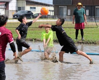 休耕田で泥んこバレー