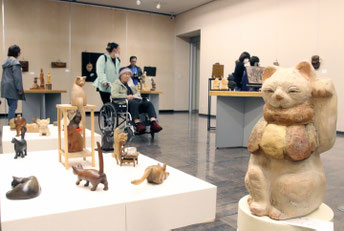 「伊達(いき)な木彫り塾」の作品展が16日から、大崎市民ギャラリー・緒絶の館で開かれている。彫刻家・千葉照男さん(75)の指導を受け地道に創作してきた作品に、創設20周年を記念しOBの作品も加え、計122点を展示している。20日まで。展示作品のうち、木下文彦さん(73)の「ネコ」は、さまざまなポーズのネコ13匹を制作。表情も豊かで愛らしく、ネコ好きを夢中にさせている。ほかにも殻付き落花生、ゴジラ、大谷翔平選手を丹念に彫り込んだ力作や東日本大震災の津波に流されたものの戻ってきた釜神、千葉さんの実験的な作品も紹介している。