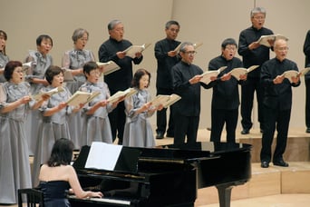 古川混声合唱団の第33回定期演奏会が19日、村田工務店パタ崎さんHallおおさき(大崎市民会館)で開かれた。昨年は指揮者・友川廣人さんの米寿記念演奏会を開き、ことしは新たに川名秀一さんも迎えるなど着実に歩みを進める同団のファンらが大勢訪れ、重厚感ある歌声に惜しみない拍手を送った。大切な誰かと自分をつなぐ空を題材にした楽曲を集めた第1部は、ジャンルや時代を超えたヒット曲ぞろいで、懐かしそうに口ずさむ聴衆の姿も。宗教曲を集めた第2部は荘厳な雰囲気で館内を包み込み、蔵王連峰を題材にした混声合唱組曲を取り上げた第3部は、冬の厳しさや春を待ちわびる心を情感たっぷりに歌い上げた。