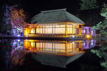 大崎市岩出山の国指定史跡・名勝「旧有備館および庭園」で、秋のライトアップが始まった。闇夜に主屋(御改所)と紅葉を照らし出す幻想的な光景が、訪れた人たちの目を引いている。ライトアップは11月1~3日と8、9日も行われる。ライトアップは春と秋の恒例行事で、秋は紅葉シーズンに合わせて実施。通常午後5時までの入館時間を延長し、主屋と庭園の紅葉を館内照明やLEDで照らしている。主屋は池の水面に樹木と共に上下反転した姿で映る様子から「対影楼」と呼ばれ、仙台藩の儒学者、佐久間洞巌(1653~1736年)による扁額も館内に掲げられている。