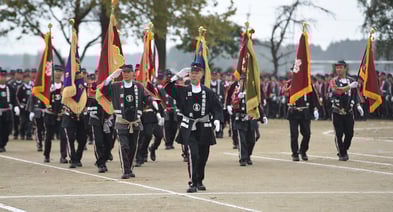 大崎市消防団の消防演習は18日、田尻中グラウンドであり、市内7支団(古川、松山、三本木、鹿島台、岩出山、鳴子、田尻)の精鋭約1000人が技術向上を図り、火災や自然災害に備えた。団員たちは服装と資機材の点検、小・中隊単位での隊列行進、火災発生を想定した小型ポンプ操法とポンプ車運用など日頃の訓練成果を発揮。伊藤康志市長、日向裕昭大崎広域消防本部消防長らが見守る中、指揮を担う幹部の号令が響き、会場は緊張感であふれた。参加全団員による分列行進では、内田博美団長を先頭に団旗、幹部、団員の順で一糸乱れぬ動きを披露。締めくくりに「火の用心三唱」で気勢を上げた。