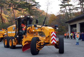 降雪シーズンに備え、国土交通省仙台河川国道事務所は4日、除雪機械出動式を大崎市鳴子温泉の鳴子除雪ステーションで行った。作業を行う建設業者など関係者43人が出席し、無事故でシーズンを終えられるよう祈願した。安全祈願の神事に続き行われた出動式で、同事務所の阿部俊彦所長は「各国道は地域の生活や経済を支える大動脈であるとともに、緊急時の迂回路としても重要。誇りをもって作業に当たってほしい」と激励した。その後、作業員たちは車庫前に並んだ除雪車やグレーダーなど10台に乗り込み、エンジンを始動。出席者たちが見守る中、国道47号へ出動した。