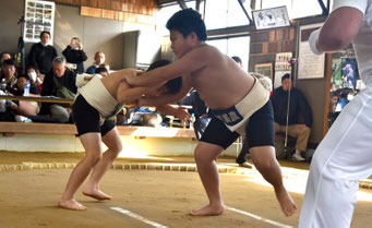 熱い取り組みに土俵沸く