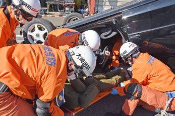本格的な冬の到来を前に5日、高速道路上での多重衝突事故を想定した大掛かりな訓練が東北道古川インターチェンジ(IC)付近であり、関係機関が連携強化に取り組んだ。2021年1月に古川IC近くの下り線で起きた多重衝突事故を踏まえたもので、県警高速隊と東日本高速道路(NEXCO東日本)東北支社仙台管理事務所、大崎広域消防本部など合わせて約70人が参加。二次災害を防ぐ交通規制、事故車からの救助活動と応急手当、通行止めの早期解除に向けた処理など、それぞれ役割分担と連携を確認していった。
