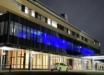 14日の「世界糖尿病デー」を啓発する「ブルーライトアップ」が大崎市民病院(同市古川穂波)で行われている。院内2階待合ホールでは関連DVDの上映も実施。同日まで。インスリンを発見した医学者フレデリック・バンティング(1891~1941年、カナダ)の誕生日にちなみ、世界保健機関(WHO)と国際糖尿病連合(IDF)が制定。国内でも、この日に合わせて糖尿病予防、適切な治療の大切さを呼び掛ける取り組みが各地で繰り広げられる。市民病院のライトアップは日没後~午後9時の間、待合ホール付近を青色の光で内側から照らす。ホール照明の消灯時刻(同8時)以降、色彩のコントラストがより際立つ。ホールでのDVD上映などは午前10時~午後4時半。