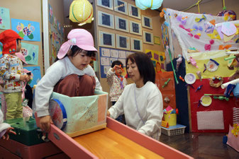 古川幼稚園(大崎市古川中里、関純一園長)の「日々のあしあと展」が13日から、大崎市民ギャラリー・緒絶の館で開かれている。紙やプラスチック容器などが素材の触って遊べる作品展で、初日は同園の3~5歳児39人が会場を訪れ楽しんでいた。15日まで。遊具がある園をまるごと移設したような会場で子どもたちの創造性や探究心を多くの市民に見てもらおうと、20年以上続けている企画。ことしも4月から作品を制作してきた。年長児が作った迷路には冷蔵庫や自動販売機を置いた休憩所、疲れを癒やす温泉が作られ、ゴールした人だけが開けられる宝箱もある。年中児のコーナーでは、滑り台を利用したジェットコースターに順番待ちの列ができていた。年少児のファストフードショップは、細部までしっかり表現。絵画や藍染めも見応えがある。