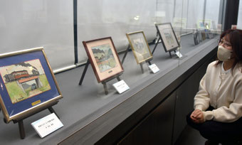 「仙台鉄道、まもなく100年」と題した企画展が、色麻町農業伝習館で開かれている。「軌道っこ」「汽車っこ」と呼ばれ親しまれた仙台鉄道を描いたイラストや資料などが展示され、来館者の関心を引いている。12月14日まで。仙台鉄道は、仙台市の通町駅から古川市(現大崎市)の西古川駅(旧中新田駅)を結んでいた軽便鉄道。同町には当時5駅が設置されていて、地域の経済や文化を支えていた。企画展は、日本郵便東北支社が仙台鉄道全線開通(通町駅-中新田駅)100周年のオリジナルフレーム切手を発行したことを記念し、町教委が実施。切手作成に協力した「色麻歴史訪ね歩き会」と連携し、イラストなど約50点を展示した。展示の中心は、仙台鉄道の車両や駅の風景を、記憶を基に描き続けた利府町の画家、故児玉泰隆さんが手掛けたイラスト。王城寺原駅の風景や鳴瀬川を渡る仙台鉄道など、柔らかな水彩のタッチと細やかな描写で当時を表現している。