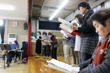 「江合鳴瀬の水清く/大地潤し幸を呼ぶ…」-。「大崎市民歌」の歌声が月に1度、市古川敷玉地区公民館に響き渡る。同館の芸術文化事業で、その名は「歌声喫茶ちむどんどん」。心弾む感情を意味する沖縄の方言を取り入れ名付けた。30日の「しきたまふれあいまつり」にも出演し、明るい歌声を披露する。市民歌が制定されて間もなく、同館が「歌ってみよう覚えてみよう大崎市民歌」という事業を行ったのが始まりで、内容や名称を変えながら続けてきた。「ちむどんどん」では市民歌を歌う機会が減った現状を寂しく思う歌好きの仲間が集まり、童謡や唱歌、昭和歌謡を交えて歌っている。
