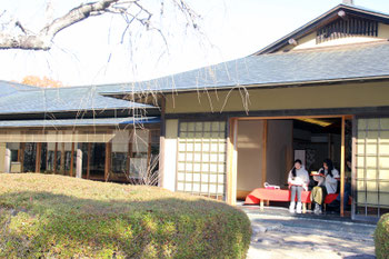 仕事や家事に日々奮闘する人たちをねぎらおうと、大崎市祥雲閣で11月22日から3日間、勤労感謝の日にちなんだ特別な茶席が設けられた。2種類の和菓子からどちらかを選ぶことができ、訪れた人たちは美しく色付いた庭を眺めながら一息ついていた。収穫に感謝する宮中行事「新嘗祭」に由来する勤労感謝の日。この日、用意された菓子はサザンカの花を模した練り切りと長寿や財、徳といった願いを込め金箔で飾られた蓬莱まんじゅう。和菓子はらはた(美里町)が天然素材のみを使用し手作りした。何組か予約が入ったほか、穏やかな天候に誘われて足を延ばした人たちも来館。秋色が美しい中庭を散策するうち普段の気ぜわしさから解放され、和菓子の優しい甘さと抹茶の風味に癒やされていた。