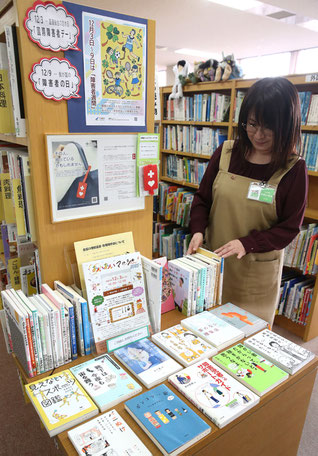 12月3日から9日までは、障害者福祉への関心と理解を深めるとともに、障害者の社会や経済、文化など各分野への積極的参加を目指す「障害者週間」。これに合わせ、美里町小牛田、南郷両図書館は特設コーナーを設け、障害についての啓発を促す書籍を展示している。南郷図書館では館内の一角にコーナーを設け、一般書約40冊を並べた。障害をテーマにした小説や、映画化され各地で上映中の塩釜市出身の作家、五十嵐大さんの自伝的エッセーもある。義足や人工関節を使っている人、内部障害、難病、妊娠初期の人など外見からは分からなくても援助や配慮を必要としていることを示す「ヘルプマーク」も掲示。積極的な声掛けや災害時の避難支援といった周りの対応について説明している。