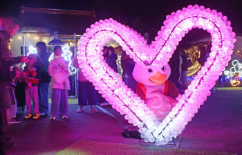 大崎市のJR鳴子温泉駅前にある「ゆめぐり広場・手湯」が1日夜、きらびやかなイルミネーションで彩られた。多くの住民や観光客がカウントダウンで点灯を祝い、心癒やされるひとときを過ごした。点灯は来年2月28日まで。冬の温泉街を明るくして住民や観光客に楽しんでもらおうと、鳴子温泉観光協会と鳴子温泉旅館組合が2015年から行っている。ことしのイルミネーションは発光ダイオード約1万個を使い、手湯施設や道路に面した手すりを飾ったほか、高さ約5㍍のツリー2本も設置。屋外ステージには雪だるまの装飾を展示した。点灯式では地元の園児や小学生がクリスマスキャロルを合唱した。