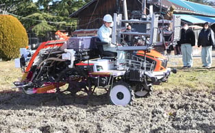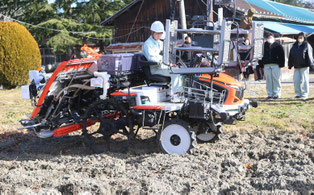 情報通信技術(ICT)を活用したスマート農業についての研修会が9日、南郷高(都築美幸校長)であった。農作業の省力化などについて学習するのが狙いで、農業を学ぶ生徒たちはロボット田植え機が無人で作業する様子を見学した。講師を務めた全農県本部農業機械課の堀英樹さんが、「農業者が高齢化などで減少する一方、農地は減らない」として能率向上に向けたスマート農業の有効性を説明。「現代の農業はゲーム感覚ででき、非農家出身の農業者が増えることを期待している」と述べた。同校の実習田で行われた実演では、農機メーカー最大手クボタの社員2人がロボット田植え機をリモコンで操作。生徒たちは、自動で田を真っ直ぐ走り、苗を植えていく模擬作業に見入っていた。
