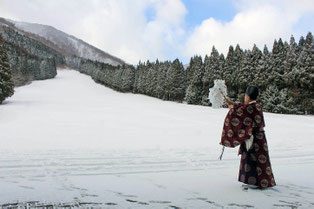 大崎市鳴子温泉のオニコウベスキー場で12日、シーズン中の安全を祈る神事が行われた。ゲレンデは白く染まったものの積雪が足りず、同日に予定していたオープンは延期された。安全祈願祭は、市や地元関係団体、従業員など約30人が出席して行い、鬼首荒雄川神社の髙橋鉄夫宮司が祝詞を奏上。スキー場を運営するオニコウベの榎屋宏隆社長らが玉串をささげ、無事故や無災害、商売繁盛、訪れるスキーヤー、スノーボーダーの技術向上などを願った。積雪不足によるオープン延期は2年ぶり。同社によると、今後数日はまとまった雪が降る見込みで、圧雪作業が可能となる深さ50㌢に達し次第、滑走可能なコースから順次営業する。ことしは長らく閉鎖していた山頂3コースのうちの1コースを復活させ、最大9コースが楽しめるという。