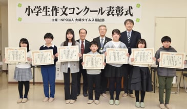 NPO法人大崎タイムス福祉部は10日、主催事業「第17回小学生作文コンクール」の表彰式を本社事務所で開き、最優秀賞に輝いた伊藤胡桃さん(古川第三小6年)ら入賞者をたたえた。入賞作品9点は後日、紙面に掲載する。テーマ「自由」で作品募集。大崎地方各校から計29点の応募があり、社内審査、北部地区教育研究会国語部会の鈴木資淳会長(南郷小校長)による最終審査を経て最優秀賞1点、優秀賞3点、佳作5点をそれぞれ選んだ。伊藤さんの作品は表題「なくさないあたりまえ」。ロシアのウクライナ侵攻のニュース映像に衝撃を受け、太平洋戦争について調べたところ「平和な毎日を当たり前だと思っていた自分が、とてもぜいたくで幸せなんだと気づいた」。その上で「平和な日々を感謝して暮らすことで過去の悲しみをむだにせず、未来に平和の大切さを伝えていけると思う」「家族や友達と笑いながら過ごす日々を一つ一つ大切にすることも、小さな一歩」と自分自身の考えをまとめ、恒久平和の大切さを訴えた。