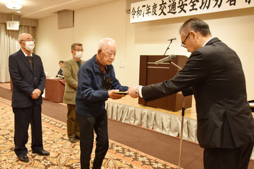 古川署、古川地区交通安全協会(安協)、同安全運転管理者事業主会(安管事業主会)、同安全運転管理者会(安管会)4者合同の「令和7年度交通安全功労者等表彰伝達式」が9日、グランド平成(大崎市古川)であり、管内で交通安全活動に尽力した個人や団体、優良運転者をたたえた。あいさつで、古川地区安協の本郷輝朗会長は「皆さんの高い交通安全意識を地域全体へと広げてほしい」と被表彰者に呼び掛けた。また古川地区安管事業主会の早坂竜太会長は自身が営む、おおさき日本語学校学生寮事業について触れ「留学生たちは日本の交通ルールを守り、日々過ごしている」と紹介した。席上、一般社団法人日本善行会から秋季善行表彰を受けた佐藤俊一さん(同市三本木)の表彰披露もあった。