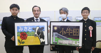 中学生がデザインした鉄道車両のヘッドマークが、柴田町と福島市を結ぶ阿武隈急行線の車両に掲出され、18日から運行されている。8月に美里町で開かれた「第14回全国高校生地方鉄道交流会」の企画部門で最優秀賞に当たる美里町長賞の受賞作が形になった。この日、マークのレプリカが受賞者から町に寄贈された。交流会(全国高校生地方鉄道交流会主催)は、高校の鉄道研究部などに所属する生徒たちが鉄道を軸とした地方活性化策を提案する催し。企画部門では、8都府県10校の中高生76人が案を発表した。このうち成城中学・高校鉄道研究部(東京都)は高校新設や大学誘致による人口流出抑制や、仙台圏ベッドタウンとして美里町本庁舎の新築移転と商業施設併設、移住者向け支援の充実を提唱。町長賞に輝き、デザイン権を手にした。部員37人からデザイン考案の希望者を募り、多数決で亀石悠太さん(中学1年)と前田祐作さん(同3年)が選ばれた。亀石さんの作品は夜景にJR小牛田駅と車両を描き、「星の街」を表現。前田さんは青空と稲穂、北浦梨、バラといった町の特徴を詰め込んだ。