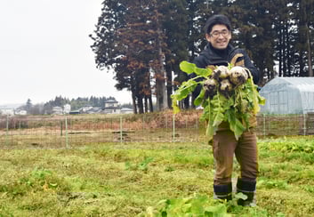加美町字南小路で農園を営む米津岳さん(44)は、栽培から加工、販売まで一貫して手掛ける6次産業に取り組んでいる。2021年にスタートし、4年目には黒字化に成功。「加工販売を伸ばし、県外や町が進めている台湾交流を好機に海外にもアプローチしていきたい」と話す。米津さんは滋賀県出身。18年から3年間、同町の地域おこし協力隊として観光振興業務に携わり、任期満了後、空き家の管理・利活用事業や宿泊施設などの運営、地場産品の商品開発を手掛ける株式会社「リロカリコクリ」を設立した。同社農業部門「コクリ農園」は、賃借を含めた農地70㌃にサツマイモとジャガイモを中心に栽培。そのほか、少量多品目で年間約80種類の野菜を育てている。農園のコンセプトは「採ったその場でまるかじり」。より良いものを地域や客に届けたいと、作る野菜は全て農薬、化学肥料を使っていない。