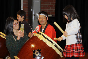 「お正月を楽しもう」と題した新春を彩る催しが11日、大崎生涯学習センター・パレットおおさきで開かれた。県内で和太鼓のワークショップや獅子舞公演を行っている宮音座が舞や演奏を披露したほか、観客向けの体験コーナーもあり、訪れた人たちは全身を使って日本の伝統芸能を楽しんでいた。同センターが、内容を変えて毎年実施している人気イベント。宮音座は県内の児童館スタッフを中心に組織しており、県内のおはやしに合わせた太鼓のワークショップは特に好評で、保育所や幼稚園、児童館などで年間20回ほど公演。6年ぶりとなる同センターでの公演も、年明け早々に80人の定員に達した。
