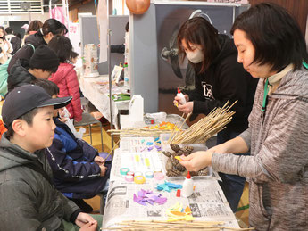 大崎地方に在住、在学、勤務する若者や学生が運営し、日頃の活動成果を発表する大崎地方青年文化祭「美里クエスト」(美里町教育委員会など主催、大崎タイムスなど後援)が18日、同町駅東地域交流センターで開かれた。出展者たちが催しや展示を通じ、現代社会に対する問題提起や理解促進も訴えた。活動の活性化を図ったり、次代の担い手としての意識を高めたりするのが狙いで、同町で開かれるのは初めて。48団体がバラ染めや藍染め、マジック、占い、ボディーペイント、水引細工などの制作、体験ブースを出展、発表した。さいころを振って出た目に応じてマスを自ら進み、ジャンプなどのミニゲームを通して英語に親しむイベントや、同町の郷土料理「すっぽこ汁」の調理体験、子育て中の人を対象にした交流カフェも人気を集めた。