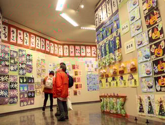 「第36回古川支援学校児童生徒さくひん展」が29日から、大崎市民ギャラリー・緒絶の館で開かれている。障害や発達の段階に応じた支援を受けながら、小学部、中学部、高等部の計224人が日々の学習の中で取り組んだ作品約800点が会場いっぱいに展示されている。2月2日まで。仲間と協力して完成させた達成感、自分を表現し心豊かに過ごせる幸せを創作活動で体験しているという子どもたち。今回の展示内容は、文化祭に匹敵する充実ぶりになった。陶芸や革細工、木工、イラスト入りTシャツ、裂き織りがワンポイントのバッグなどがずらりと並び、尾びれやうろこを子どもたちの小さな手形で描いたこいのぼりも。粘土で作った釜神は力強さの中に愛嬌がある。